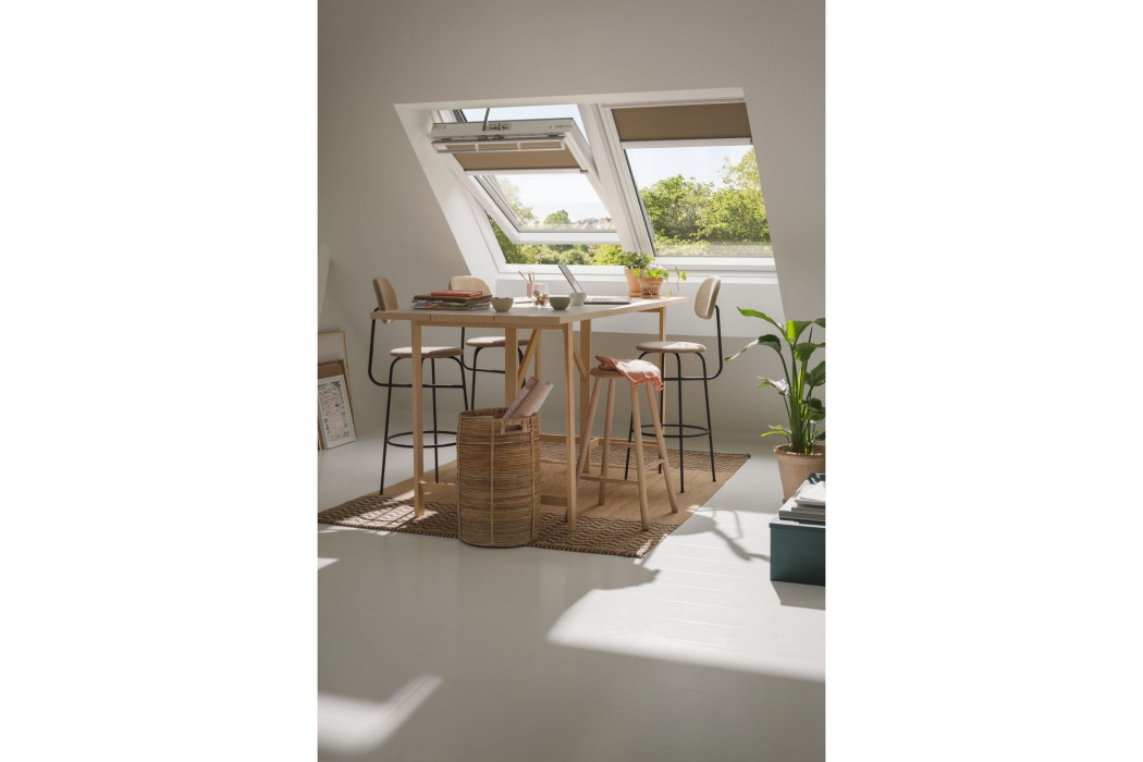 Prostota, minimalizm, stonowane kolory kojarzące się z naturą i naturalne dodatki– to esencja skandynawskiego stylu. Rolety na oknach dachowych idealnie komponują się ze stylem tego wnętrza. Co więcej, dają możliwość kontrolowania, ile światła wpadnie do środka, a do bardzo przydane w domowym biurze.