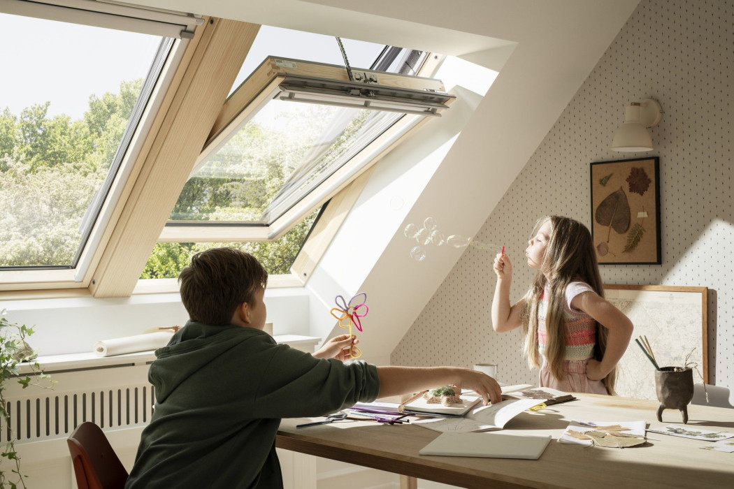 Nic nie zakłóca widoku - nowy pakiet trzyszybowy VELUX pozwala cieszyć się światłem bez względu na pogodę. Powłoka antyroszeniowa ogranicza skraplanie pary na zewnętrznej powierzchni szyby, a łatwozmywalna powierzchnia sprawia, że deszcz pomaga utrzymać szyby w czystości. To połączenie innowacji i komfortu zostało docenione także przez ekspertów branży- firma VELUX Polska otrzymała za nie wyróżnienie w kategorii „Innowacje” podczas DACH Forum 2026.