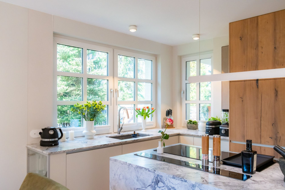 Najbardziej uniwersalne okna Msline+ to propozycja między innymi do budynków wielomieszkaniowych, a także domów o prostym, minimalistycznym stylu. Nieco inną stylistyką wyróżniają się okna Wood Look. Łączone pod kątem prostym profile utrzymane są w modnych wzorach drewnopodobnych, dzięki czemu do złudzenia przypominają naturalne drewno. Szczególnie chętnie wybierają je właściciele domów jednorodzinnych.