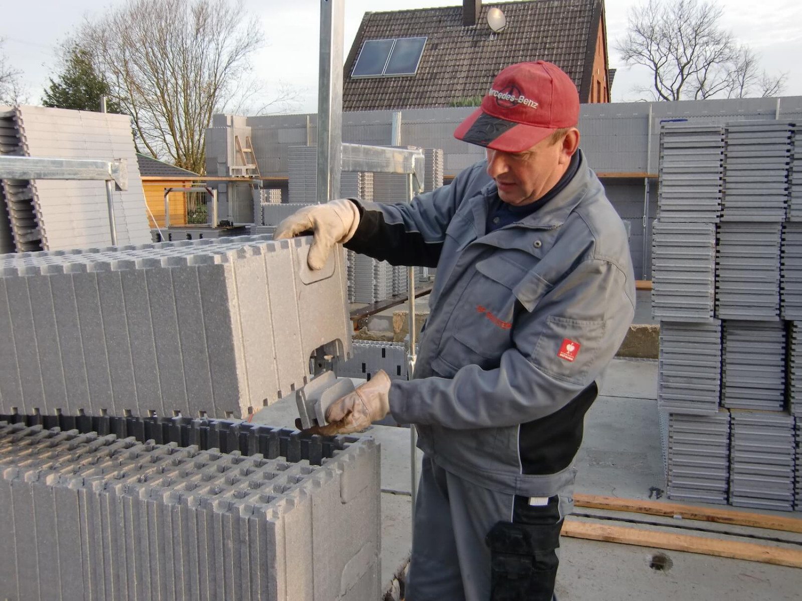 Mając na uwadze energooszczędność, nie można nie wspomnieć o ścianach z kształtek styropianowych, które układa się warstwami na zasadzie podobnej do konstrukcji z klocków. Kształtki te są lekkie, łatwe do obrobienia i łączenia dzięki specjalnym zamkom, co upraszcza i przyspiesza montaż. Po ułożeniu szalunku wewnętrzne przestrzenie uzupełnia się zbrojeniem oraz zalewa betonem. Dzięki temu otrzymuje się ścianę z żelbetowym rdzeniem nośnym oraz dwoma warstwami styropianu - od strony zewnętrznej i wewnętrznej – co zapewnia bardzo dobrą izolacyjność cieplną. Przy wykorzystaniu odpowiednio grubych elementów możliwe jest wzniesienie domu w standardzie pasywnym, gdzie zapotrzebowanie na energię do ogrzewania jest minimalne.