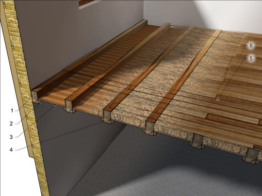 - Podkładka gumowa lub filcowa pod legary - izolacja akustyczna.
