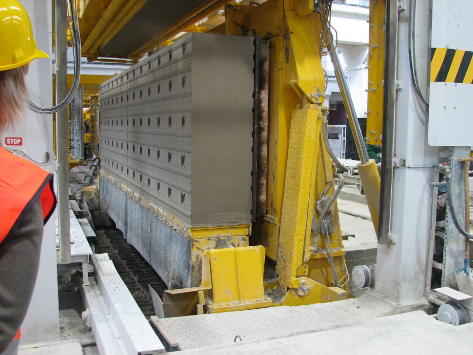 Po wyrośnięciu i uzyskaniu wstępnej wytrzymałości rozformowuje się formy i blok materiału dostarczany jest na krajalnicę, na której następuje cięcie elementów oraz nadawanie ewentualnych profili takich jak: pióra, wpusty, czy uchwyty montażowe. Cięcie następuje za pomocą naprężonych na krajalnicy drutów stalowych o grubości od 0,5 do 1,0 mm. Proces ten odbywa się automatyczne. Odcięte naddatki wymiarowe odlewu trafiają ponownie do produkcji, więc produkcja jest całkowicie bezodpadowa. Dokładność cięcia decyduje o dokładności wymiarowej wyrobów końcowych.