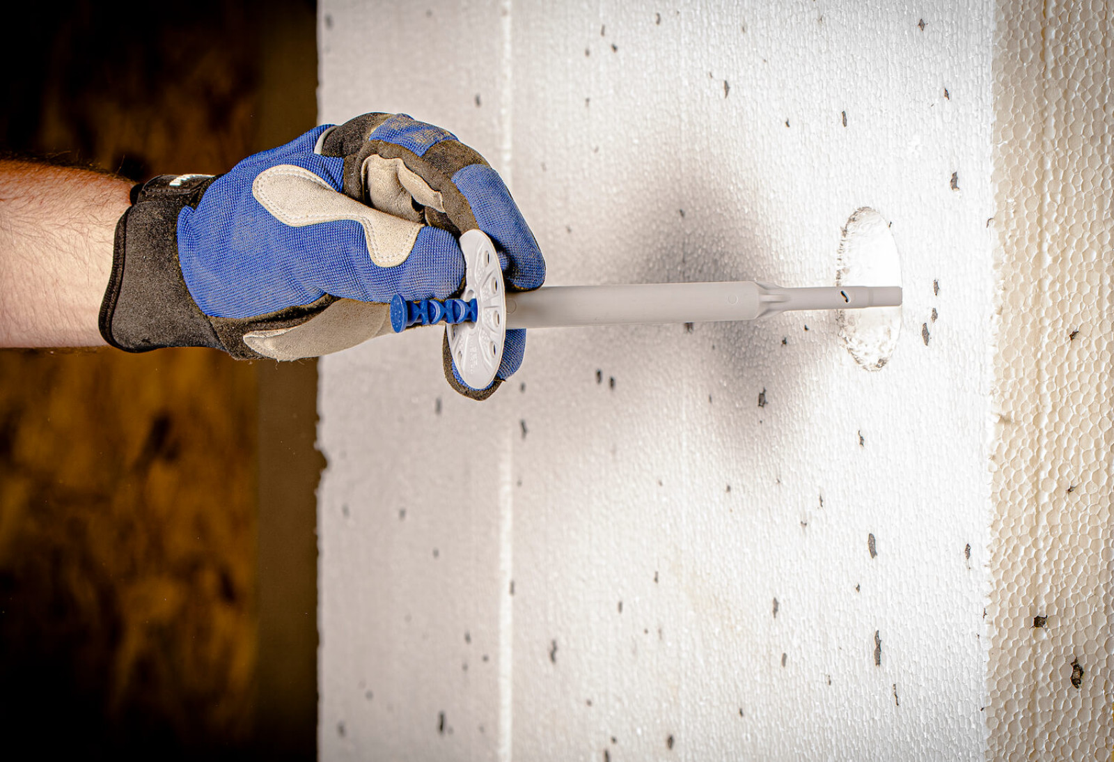 Ocieplenie ze styropianu wymaga zwykle dodatkowego mocowania za pomocą kołków. Z reguły na powierzchni 1 m2 mocuje się od 4 do 6 łączników, fot. RAWLPLUG