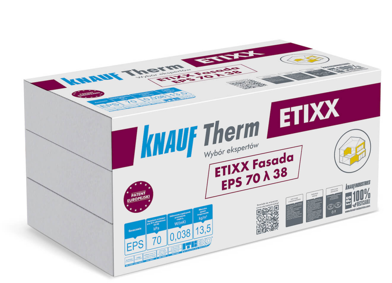 Jedną z informacji, którą znajdziemy na opakowaniu styropianu, jest ta dotycząca zastosowania. Z tym, że określenia używanie przez producentów, takie jak np. „fasada”, nie są unormowane w prawie, dlatego przed zakupem warto dopytać o przeznaczenie wyrobu, fot. KNAUF THERM