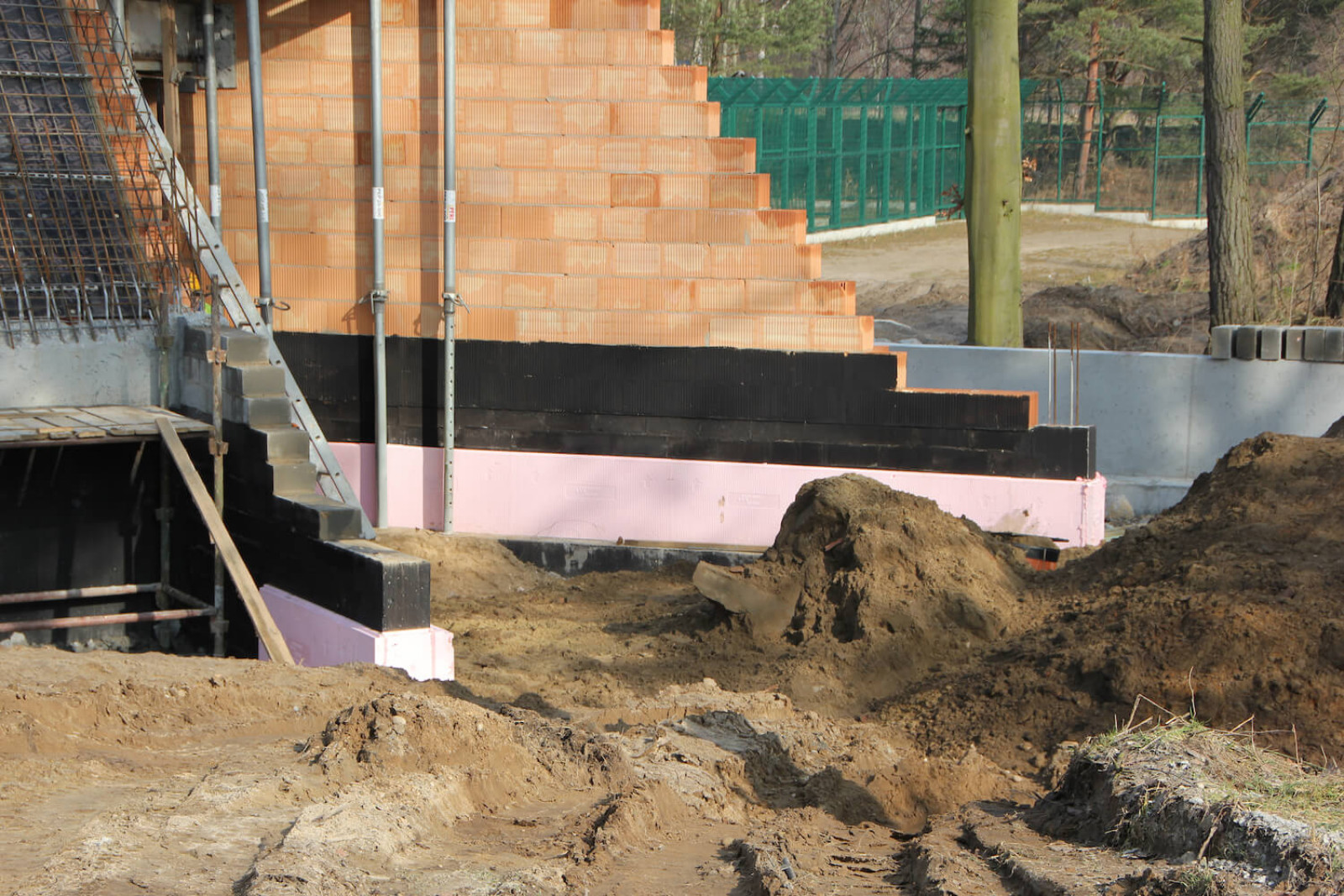 Polistyren ekstrudowany (XPS) charakteryzuje się niewielką chłonnością wilgoci, dlatego stosuje się go w miejscach szczególnie narażonych na kontakt z wodą, jak np. ściany fundamentowe, fot. swisspor