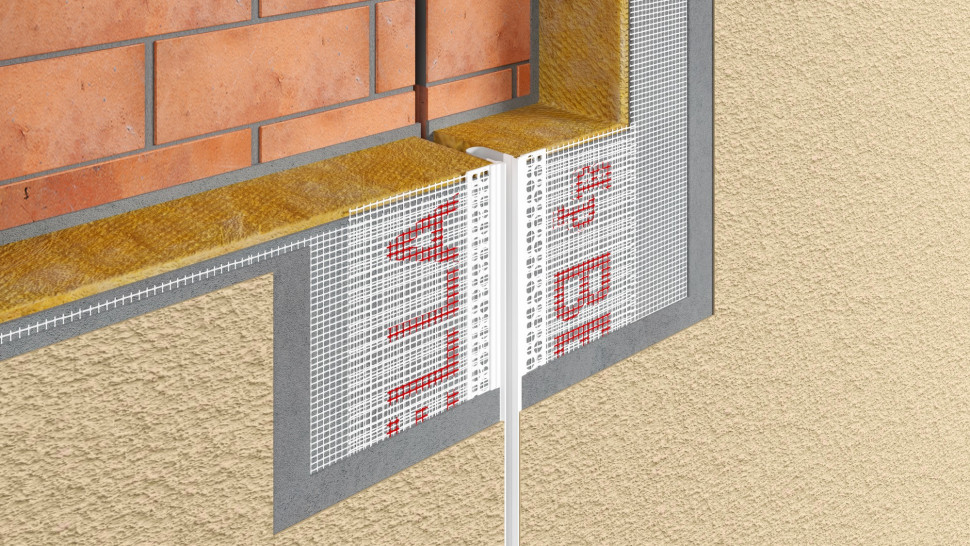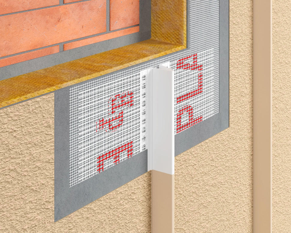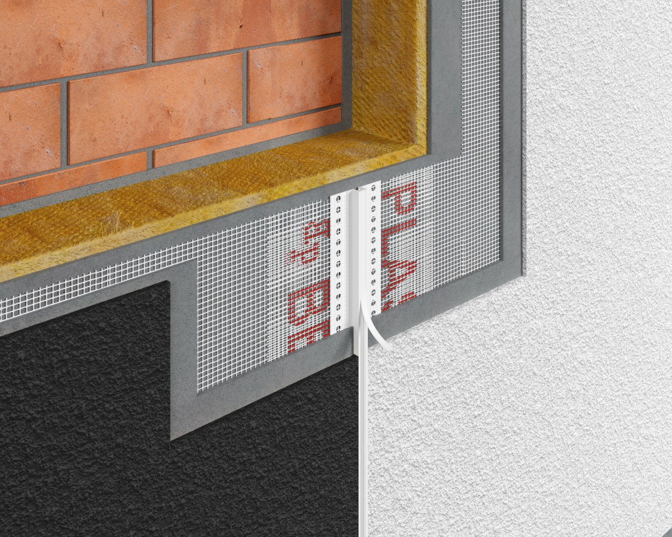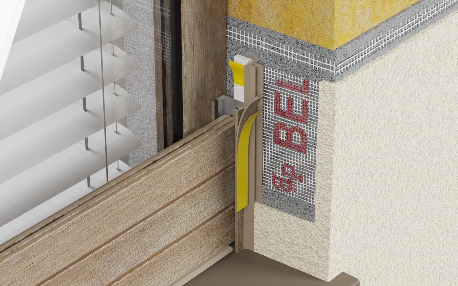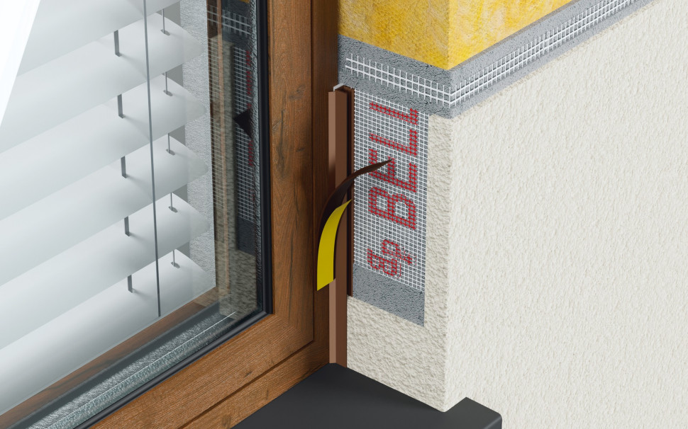 BP13 R kolor turner oak listwa dylatacyjna do prowadnic rolet zewnętrznych w ETICS - montaż