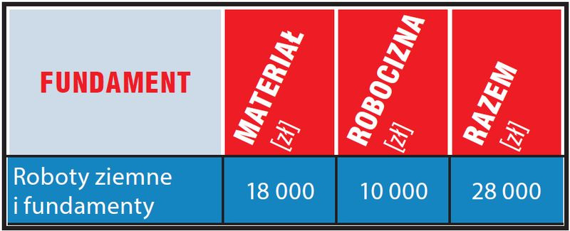 Łączny koszt zasadniczych elementów stanu surowego to około 150 000 zł