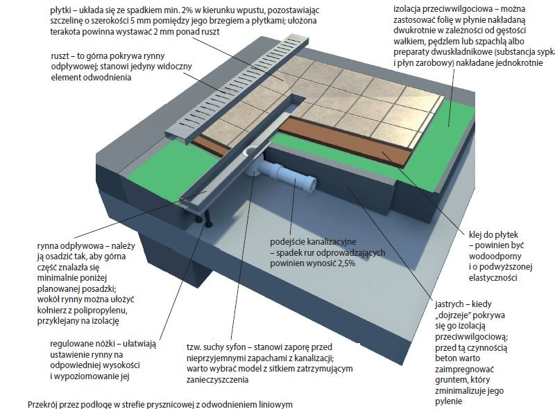 Z jakich elementów składa się odwodnienie liniowe prysznica?
