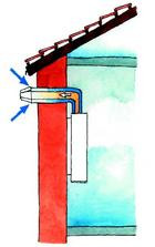 Jeżeli moc kotła nie przekracza 21 kW, przewód ten nie musi być podłączony do komina, ale może wychodzić na zewnątrz bezpośrednio przez ścianę. Przy większych mocach spaliny muszą być odprowadzone ponad dach, ale także nie trzeba budować dla nich komina. Wystarczy przewód powietrzno-spalinowy.