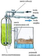 Stosowane są przede wszystkim do uzdatniania wody z własnego ujęcia. Zmiękczanie wody polega na zamianie jonów wapniowych i magnezowych, odpowiedzialnych za twardość wody, na jony sodu. Proces ten zachodzi w wymiennikach jonowych podczas przepływu uzdatnionej wody przez złoże jonowymienne. Wymiana jonowa jest procesem odwracalnym. Wymieniacz jonowy po nasyceniu jonami wapnia i magnezu można zregenerować solą kuchenną – jony wapnia i magnezu zostają wypłukane do odpływu, a na złożu pozostają jony sodowe. Częstotliwość regeneracji zmiękczaczy jest uzależniona od twardości uzdatnianej wody oraz jej ilości. Zmiękczacze wody są najczęściej montowane za wodomierzem i filtrem mechanicznym na wejściu wody do budynku 5. Do domów jednorodzinnych często wystarcza urządzenie o wydajności 1-2 m3/h.