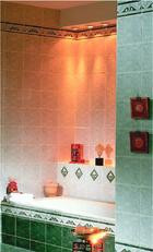 Można także zrezygnować z oświetlenia centralnego, choć nie jest to łatwe do zrekompensowania. Wtedy z rozmachem musimy zaplanować inne sposoby oświetlenia kluczowych miejsc. Podstawą jest równomierne, z każdego boku, oświetlenie lustra. Jeżeli lubimy długie kąpiele z książką, warto pomyśleć o jakimś punkcie świetlnym nad wanną - np. halogenie zasilanym napięciem bezpiecznym 12 V. Jeżeli nasza łazienka ma metraż, pozwalający na urządzenie kącika z toaletką dla pani domu, to nad nią także niezbędna będzie dobra lampka. W saloniku kąpielowym, obok fotela i komódki, z dala od mokrych miejsc, możemy postawić "typową" lampę pokojową.