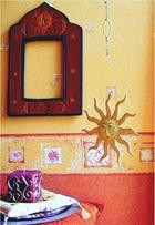 Pokój ożywią też wzory na ścianach. Wykonamy je przy pomocy szablonów lub stempli. Szablony to gotowe pasy sztywnego papieru lub folii z wyciętymi w nich wzorami. Wzór uzyskujemy poprzez przyłożenie szablonu do ściany i zamalowanie wyciętego w nim otworu farbą w wybranym kolorze. Natomiast stemple wykonane są ze sztywnej gąbki, a wzór uzyskujemy poprzez odciskanie ich na ścianie.