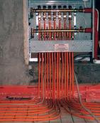 | Elementy systemu Na wodne ogrzewanie podłogowe składają się rury, rozdzielacze oraz automatyka. Materiał rur Rury mogą być miedziane lub z tworzyw sztucznych. Parametry techniczne materiału muszą być odpowiednie do warunków pracy (np. dopuszczalna temperatura, ciśnienie wody). Rury miedziane są miękkie, co pozwala na swobodne (ale zgodne z projektem) kształtowanie tras ich przebiegu. Są też odporne na korozję i przenikanie tlenu do wnętrza rury. Dostępne są na rynku również rury z fabryczną otuliną zabezpieczającą przed uszkodzeniami mechanicznymi. Podatność na uszkodzenia wymaga ostrożności podczas montażu i docinania rur. Zaletą rur z tworzyw jest prosty montaż i mały ciężar. Do wyboru mamy PE-X, polibutylen (PB), polipropylen (PP), polietylen PE-RT oraz rury wielowarstwowe. Rury przeznaczone do ogrzewania podłogowego są elastyczne, łatwe w układaniu i odporne na korozję. Gładka powierzchnia wewnętrzna ścianek minimalizuje opory przy przepływie wody. Warto kupować rury z powłoką antydyfuzyjną, które nie przepuszczają tlenu do swojego wnętrza. Układanie rur Rury układa się w pętle. W pomieszczeniu – zależy to od jego wielkości – może być jedna albo kilka pętli. Mogą one mieć kształt spirali (rura powrotna i zasilająca ułożone są równolegle obok siebie) lub meandra. W pierwszym rozwiązaniu, obok rury z wodą o temperaturze wyższej znajduje się rura z wodą o temperaturze niższej. Powoduje to uśrednienie temperatury podłogi na całej jej powierzchni. W wężownicach meandrowych temperatura wody jest najwyższa na początku, a najniższa na końcu przewodu. A to oznacza, że część podłogi jest ogrzewana mocniej, część zaś słabiej. Z tego powodu wężownica powinna mieć początek w pobliżu ścian o najwyższych stratach ciepła (ściany zewnętrzne z oknami). Można w tych miejscach zagęszczać rozstaw rur, dzięki czemu podwyższana jest miejscowo temperatura podłogi, przy niezwiększonej temperaturze wody zasilającej. Dodatkową zaletą wężownicy spiralnej jest to, że rury są gięte tylko pod kątem 90°, a nie 180°, co ma miejsce przy rurach ułożonych w meander. Jej wadą jest większe zużycie przewodów i większy nakład robocizny. Bardzo ważny jest rozstaw rur grzejnych, który powinien wynosić 0,1-0,3 m. Mniejszy oznacza wyższą i bardziej wyrównaną temperaturę podłogi, ale jednocześnie większe zużycie rur. Przy układaniu instalacji należy zwrócić uwagę, aby rury zalewane betonem były wykonane z jednego odcinka (nie były łączone w warstwie jastrychu), bo grozi to powstaniem nieszczelności trudnej do lokalizacji i naprawy w przypadku uszkodzenia. Rozdzielacz Może być zamontowany w obudowie wykonanej w wersji na- lub podtynkowej. Każdy wyposażony jest w komplet zaworów odcinających, regulacyjnych oraz w systemowe elementy podłączeniowe. Automatyka Do sterowania ogrzewaniem podłogowym służą termostaty oraz zegary sterujące z programowaniem dziennym i tygodniowym. Duża bezwładność systemu sprawia, iż od momentu zmiany nastawy temperatury na termostacie do jej faktycznego podniesienia w pomieszczeniu mogą upłynąć nawet 2-3 godziny. |