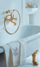 Nie ma co ukrywać, że wyjątkową ozdobą łazienki będzie stylizowana na retro, pozłacana bateria ścienna (fot. Kludi)