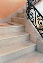 Stopnie schodów – wewnętrznych i zewnętrznych – produkowane mogą być z płyt granitowych, marmurowych i piaskowca grubości od 2 cm. W salonie czy dużym holu pięknie będzie się prezentowała ażurowa konstrukcja, na którą złożą się kamienne stopnie oparte na umieszczonej centralnie belce wspornikowej.