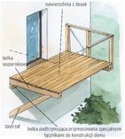 W domach murowanych też można mieć drewniany balkon. Opiera się go wtedy na – również drewnianych – zastrzałach, podtrzymujących go od dołu .