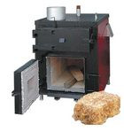 Paliwem może być także słoma. Jej wilgotność nie powinna przekraczać 20%. Wtedy ze spalenia 1,7 tony uzyskuje się tyle samo energii, co ze spalenia 1 tony węgla, z tym, że najbardziej opłaca się stosować słomę w postaci sprasowanych balotów. Jej zaletą jest pozostawianie po spaleniu niewielkiej ilości popiołu. Jednak decydując się na słomę jako opał, należy przewidzieć szczególnie dużo miejsca do jej magazynowania.