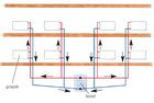 W obrębie jednej kondygnacji woda grzewcza jest rozprowadzana za pośrednictwem instalacji rozdzielaczowej – od rozdzielaczy przewody są prowadzone do poszczególnych grzejników. Rury zazwyczaj prowadzi się w szlichcie podłogi, najkrótszą drogą od rozdzielacza do grzejnika albo wzdłuż ścian zewnętrznych. Prowadzenie rur po najkrótszej linii pozwala oszczędzić na materiale, umożliwia wymianę uszkodzonego kawałka rury bez wyłączania całego ogrzewania i ułatwia sterowanie każdym obiegiem z rozdzielacza.