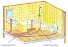 Do układania rur w podłodze wykorzystuje się rury elastyczne z miedzi lub polietylenowe. Rury nie powinny mieć połączeń pod podłogą, bo zawsze istnieje niebezpieczeństwo ich rozszczelnienia. Nakłada się na nie osłony z rury karbowanej – tzw. peszle, a w przypadku rur c.w.u. również otulinę izolującą cieplnie.
