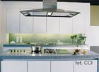 Nowoczesny okap kuchenny ma zwykle własne oświetlenie. Światło nie musi być mocne – prace w strefie kuchenki nie wymagają go wiele; wystarczy jeśli pozwoli precyzyjnie doprawić strawę w rondlu.