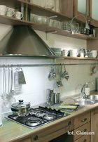 Wreszcie światło naturalne, w większości dzisiejszych kuchni na szczęście obecne. Najłagodniejsze i najbardziej rozproszone da nam okno od wschodu lub północy. Przy pozostałych kierunkach musimy zapewnić sobie możliwość jego dozowania za pomocą rolet czy żaluzji. Okno powinno być duże i tak umieszczone, by równomiernie doświetlało całe wnętrze. Im jednak jaśniejsza kuchnia, tym ciemniej – prawem kontrastu – będzie się prezentowała sąsiadująca z oknem ściana i stojące przy niej meble. Dlatego w szafkach na ścianie okiennej koniecznie powinniśmy zamontować sztuczne oświetlenie – niejednokrotnie będziemy z niego korzystać nawet w środku dnia.