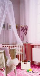 Dla noworodka możemy kupić kołyskę. Ten uroczy mebel lubią też bujane maleństwa, ale niestety, wyrastają z niego zaskakująco szybko. Łóżeczko 60x120 cm powinno wystarczyć już na 3-4 lata. Nad łóżeczkiem – najlepiej gdy ustawione jest w pobliżu okna – można powiesić wesołe ozdoby i wyraziste obrazki – żywe kolory stymulują rozwój dziecka. By zapewnić dziecku spokojny sen można zrobić baldachim, a szczebelki wyścielić miękką osłonką.