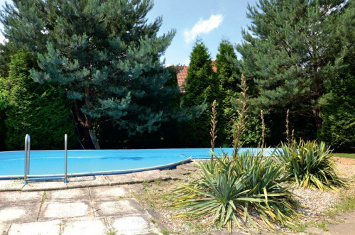 Ola i Kajetan kupili nieruchomość pod miastem głównie ze względu na wygodny dom. Podczas pierwszych oględzin posesji, z zaskoczeniem stwierdzili, że w ogrodzie znajduje się również… sporej wielkości basen pod chmurką. Poprzedni właściciele wkopali w podłoże zaizolowaną termicznie blaszaną konstrukcję, wyściełaną folią, i użytkowali ją przez 7 lat. Oczywiście kupujący wiedzieli, że takie odkryte kąpielisko oznacza dla nich w przyszłości nie tylko przyjemność podczas użytkowania, ale również pracę i koszty, jakie trzeba co roku włożyć w utrzymanie czystości wody. Ale skoro basen niespodzianka był już gotowy, ucieszyli się, że tuż przy nowym domu będą mieli możliwość pływania i bardziej różnorodnego wypoczynku.