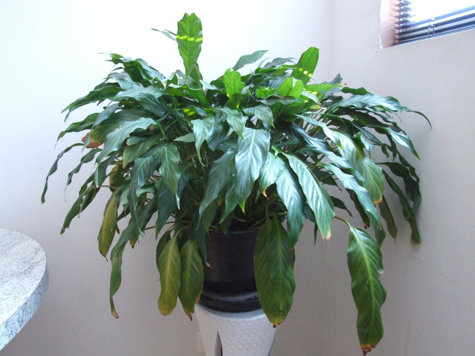 Żółknące liście ogólnie bujnie rosnącej i dobrze prezentującej się rośliny mogą wskazywać na nadmierne nasłonecznienie - należy zmienić stanowisko na mniej eksponowane na bezpośrednie promieniowanie.