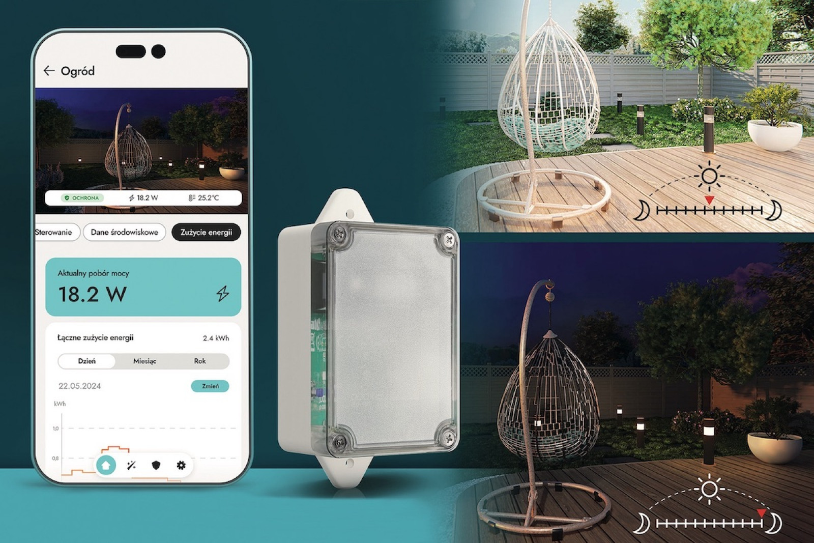 Ogrodową instalację elektryczną warto też wyposażyć w łącznik z programatorem czasu, który pozwala na ustawienie godzin pracy oświetlenia zewnętrznego. Jeszcze lepiej sprawdzi się system inteligentnego sterowania oświetleniem, który pozwala ustawić czas działania poszczególnych lamp, natężenie światła, jak również umożliwia tworzenie scen świetlnych. Systemem takim można sterować za pomocą odpowiedniej aplikacji w telefonie.