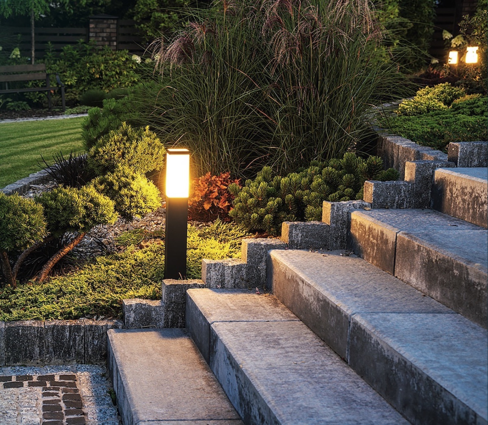 Dla bezpieczeństwa domowników istotne jest właściwe oświetlenie schodów zewnętrznych. Można w tym celu zastosować oprawy słupkowe, fot. Satel