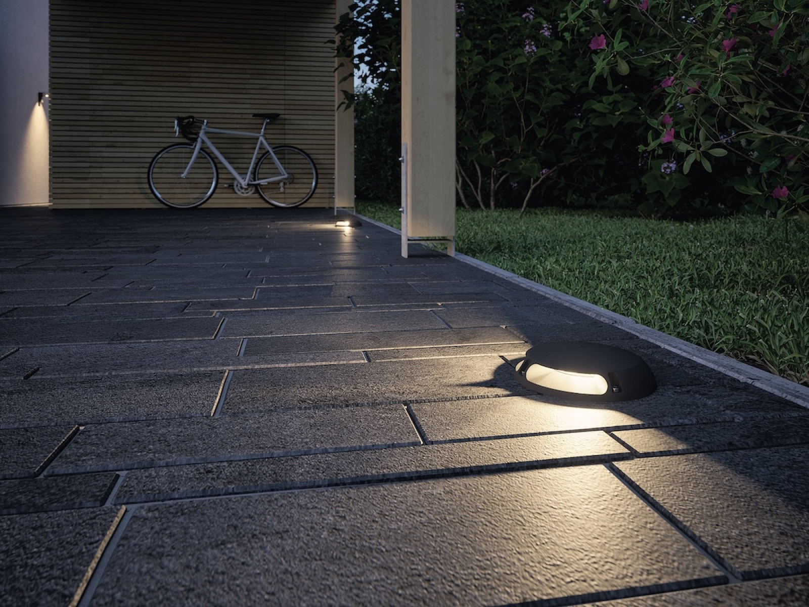 W nawierzchni z płyt lub kostki montuje się oprawy najazdowe odporne na obciążenie oraz wilgoć, fot. PAULMANN (LANGE ŁUKASZUK)