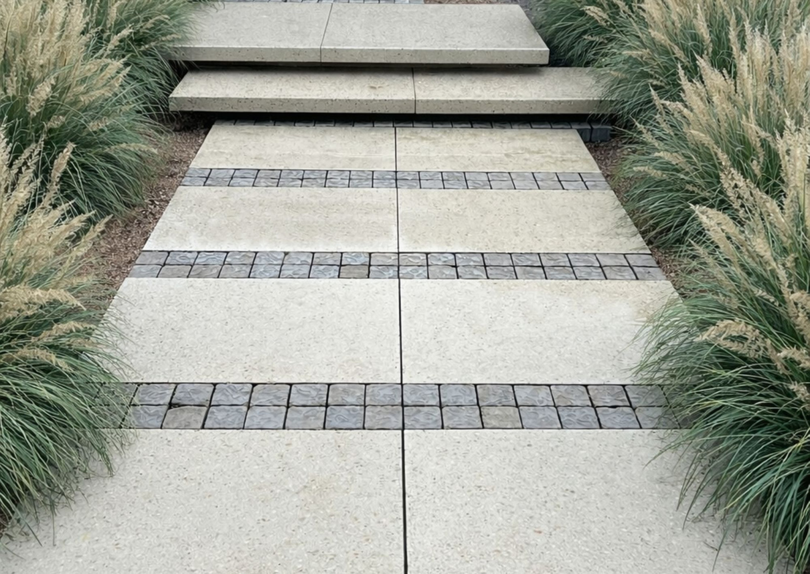 Podobne podejście coraz częściej widoczne jest także w przestrzeniach miejskich. Place i ciągi piesze, w których duże płyty łączone są z betonowymi kostkami o "granitowym" charakterze, zyskują ponadczasowy wygląd i wysoką funkcjonalność. Skala się zmienia, lecz idea pozostaje ta sama. Łączenie formatów daje niemal nieograniczone możliwości kształtowania nawierzchni.