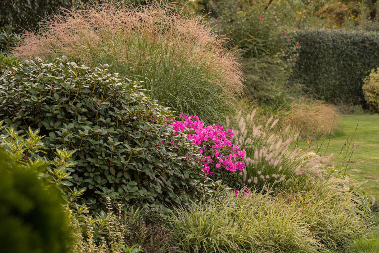 Rabata z trawami ozdobnymi i azaliami, fot. Adobe Stock
