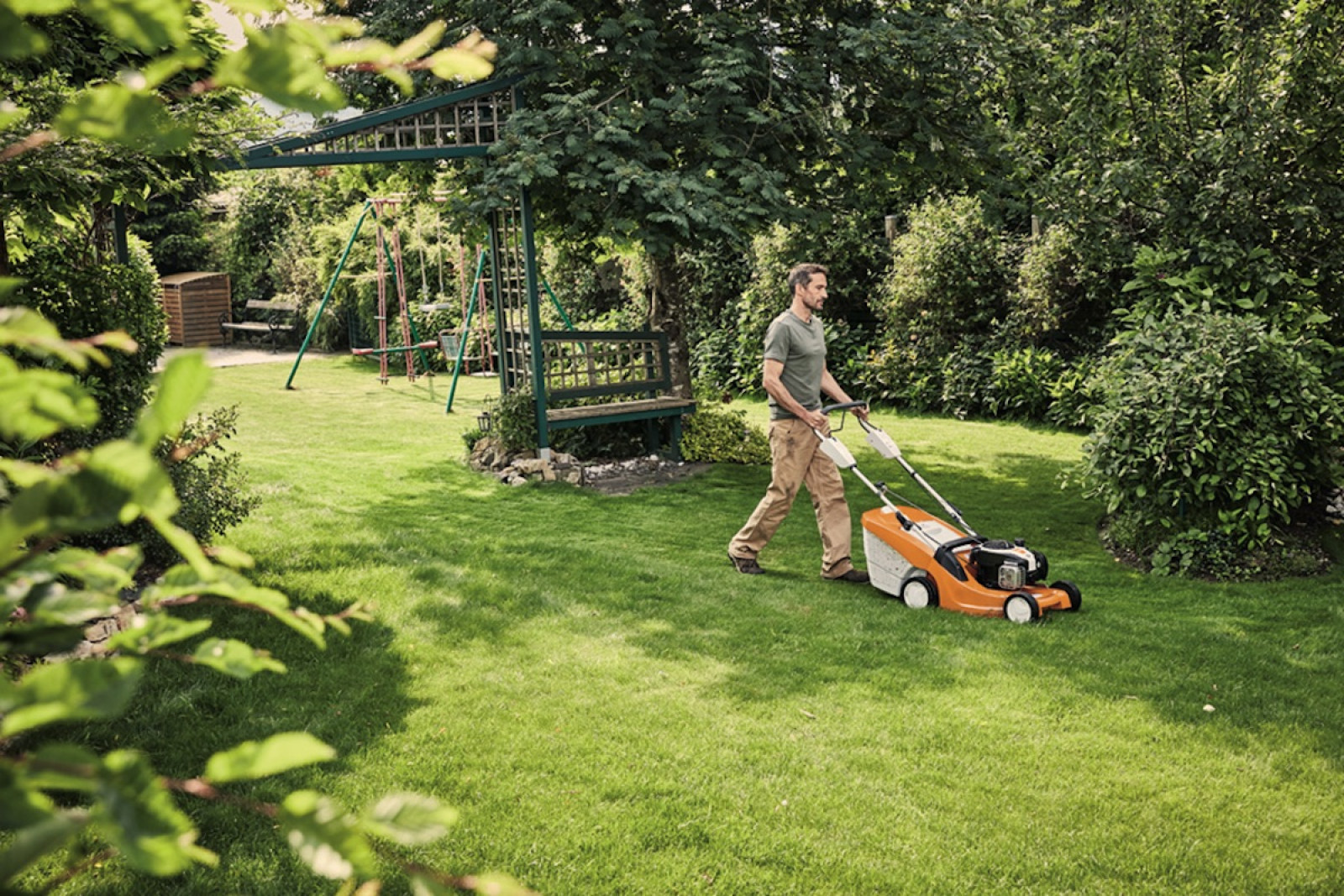 Kosiarki spalinowe sprawdzają się na większych trawnikach, gdzie potrzebna jest większa moc i swoboda pracy. Nie wymagają dostępu do energii elektrycznej, dlatego można nimi wygodnie kosić rozległe powierzchnie, fot. STIHL