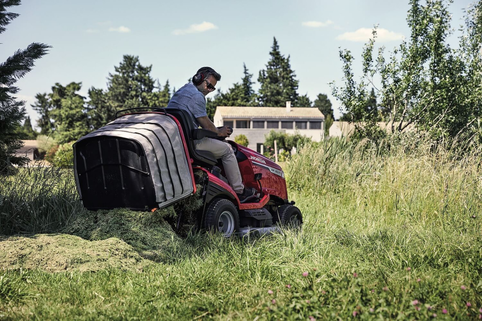 Traktorki ogrodowe ułatwiają koszenie bardzo dużych trawników. Dzięki szerokiemu zespołowi tnącemu pozwalają szybko skosić rozległe powierzchnie, a wygodne siedzisko zapewnia komfort pracy, fot. HONDA