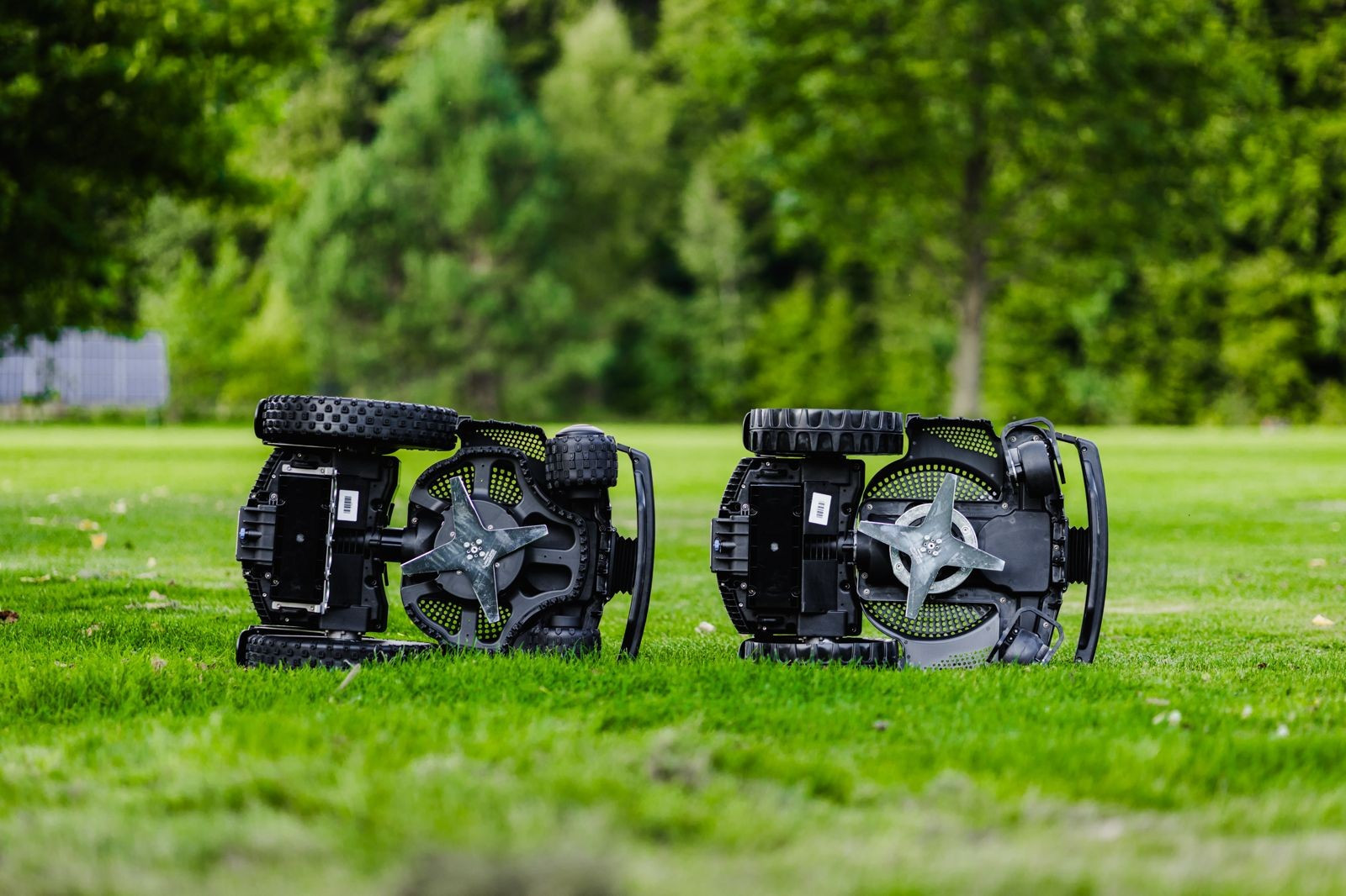 Przy braku obrzeży, nierównym terenie oraz dużych pochyłościach idealnie sprawdzą się roboty z napędem na 4 koła. Przegubowa budowa pozwala na sprawne manewry, wiele czujników zderzenia - na pracę w zalesionym terenie, miękkie koła z elastycznej gumy - pozwalają na bezproblemową pracę w każdych warunkach pogodowych.