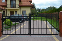 Szerokość działki i układ komunikacji uniemożliwił zamontowanie bramy przesuwnej
