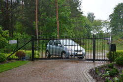 Przez kilka lat otwieraliśmy bramę ręcznie. W 2007 r. kupiliśmy napęd, ponieważ w okolicy zaczęto ludziom kraść samochody, w momencie kiedy byli zajęci obsługą bramy. Wybraliśmy markowy napęd. Obsługujemy go dwukanałowym pilotem, który reguluje również bramę w garażu. Monter po zakończeniu pracy namówił nas, żeby rozwiercić śruby, przytrzymujące obudowę napędu. I na szczęście to zrobił! Wkrótce próbowano go ukraść. Złodzieje przecięli siatkę, ale nie udało im się wyjąć napędu.