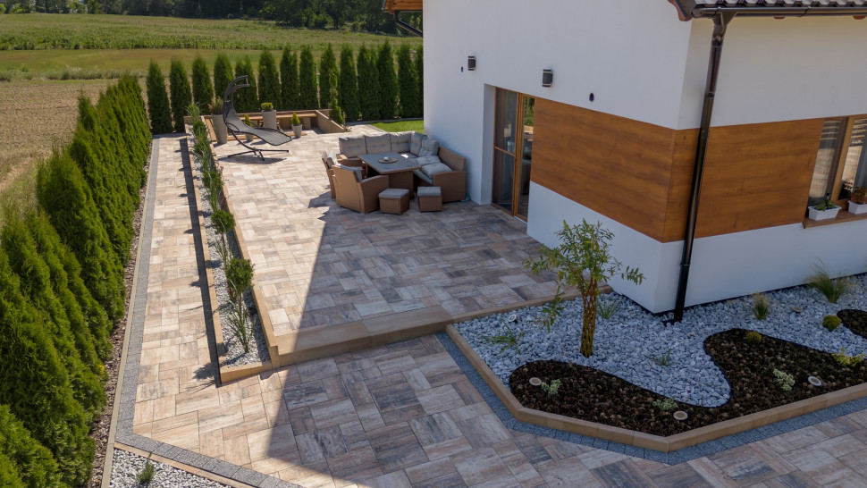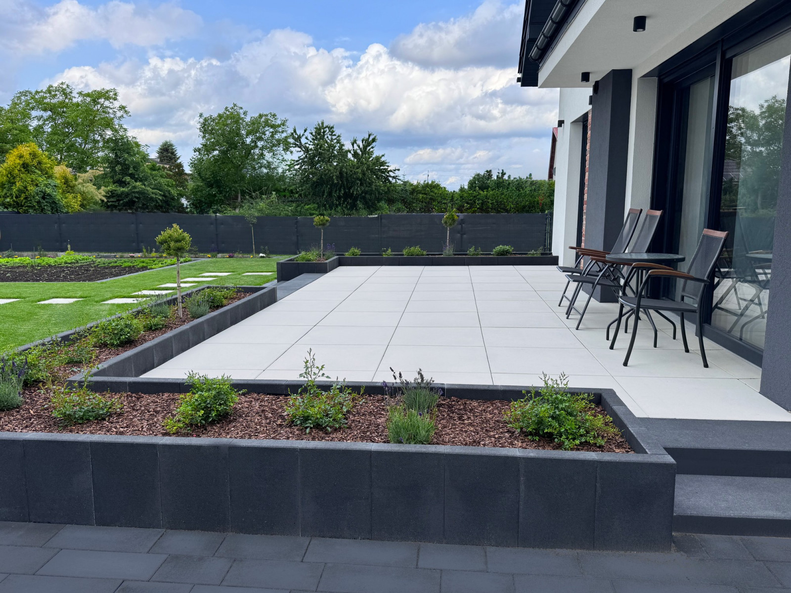 Wybór odpowiedniej kolorystyki tarasu powinien wynikać z analizy otoczenia, m.in. typu elewacji, koloru dachu, stylu architektonicznego oraz charakteru roślinności. Beżowe tarasy doskonale sprawdzają się przy domach o jasnych, piaskowych lub drewnianych elewacjach, a także w ogrodach pełnych zieleni, ponieważ ocieplają przestrzeń i nadają jej miękkości. Szarości natomiast idealnie komponują się z nowoczesnymi budynkami, metalowymi detalami i minimalistycznymi ogrodami, tworząc elegancki i uporządkowany efekt.