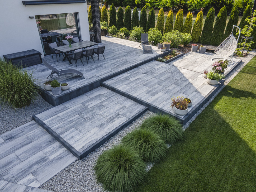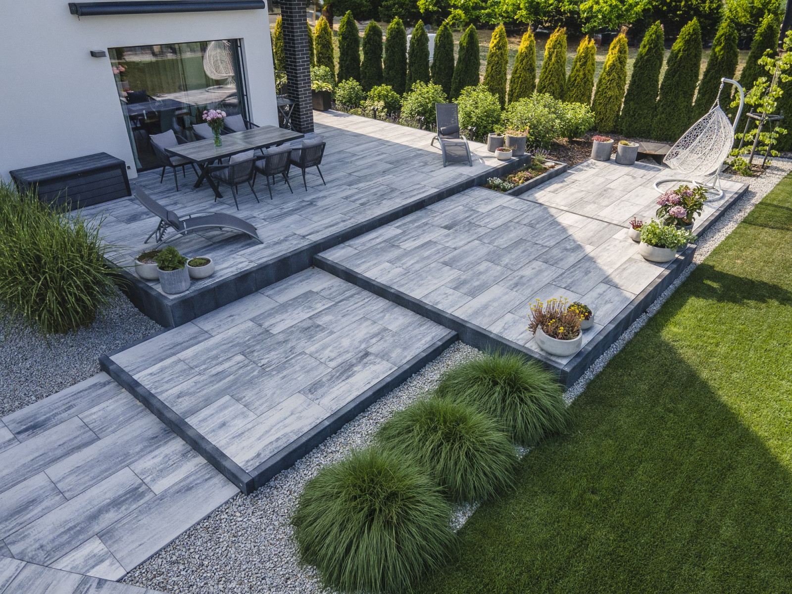 Alternatywą dla palisad są stopnie schodowe, które pozwalają stworzyć bezpieczne i estetyczne zejście z tarasu do ogrodu. Ich konstrukcja jest przemyślana pod kątem trwałości i intensywnej eksploatacji, co czyni je idealnym wyborem do przestrzeni codziennego użytku. Połączenie płyt Talamona, Teramo czy Verona ze stopniami schodowymi w tym samym odcieniu tworzy elegancką i spójną kompozycję.