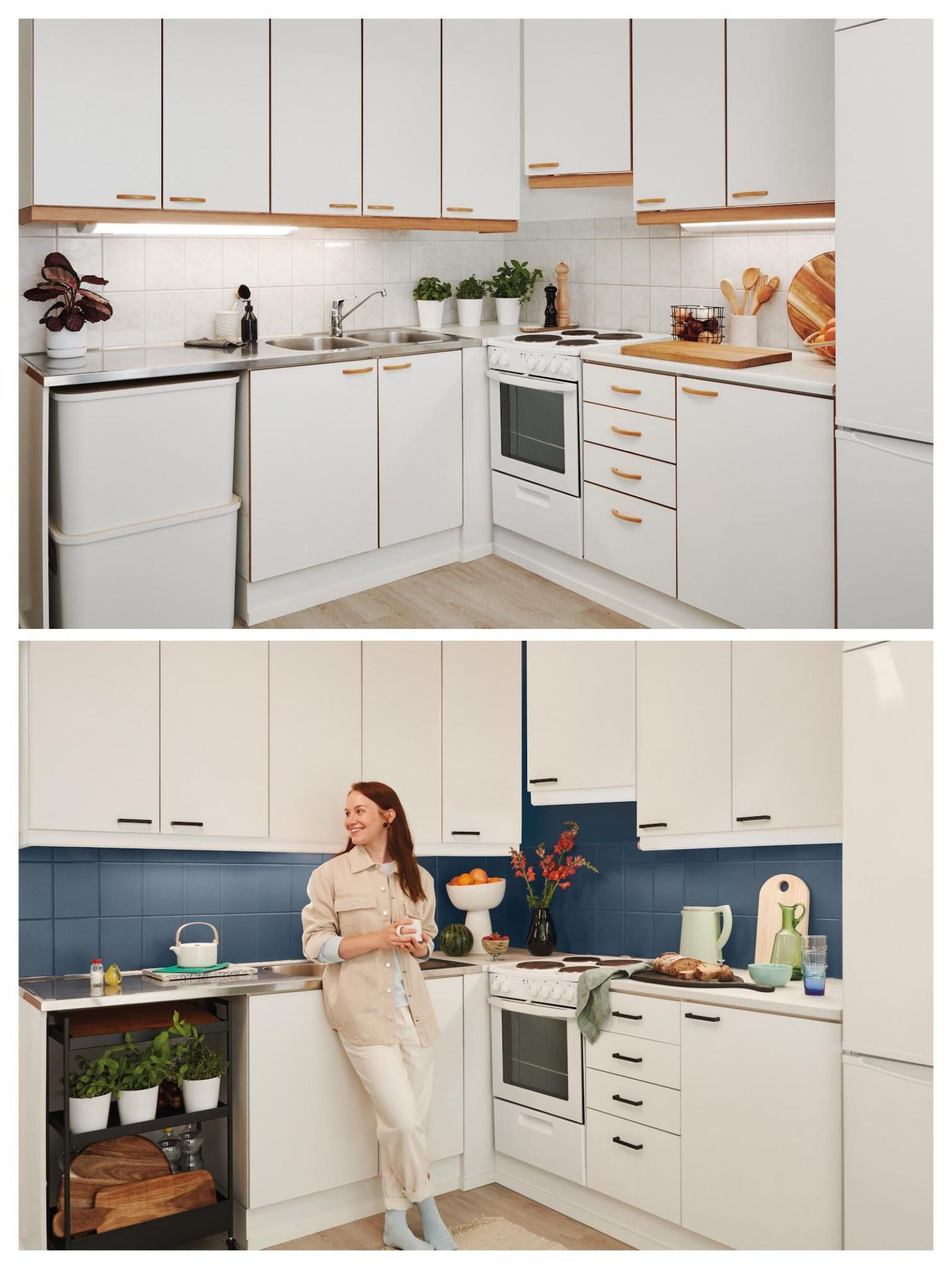 Stare płytki w kuchni zamiast skuwać można pomalować na modny kolor, fot. TIKKURILA
