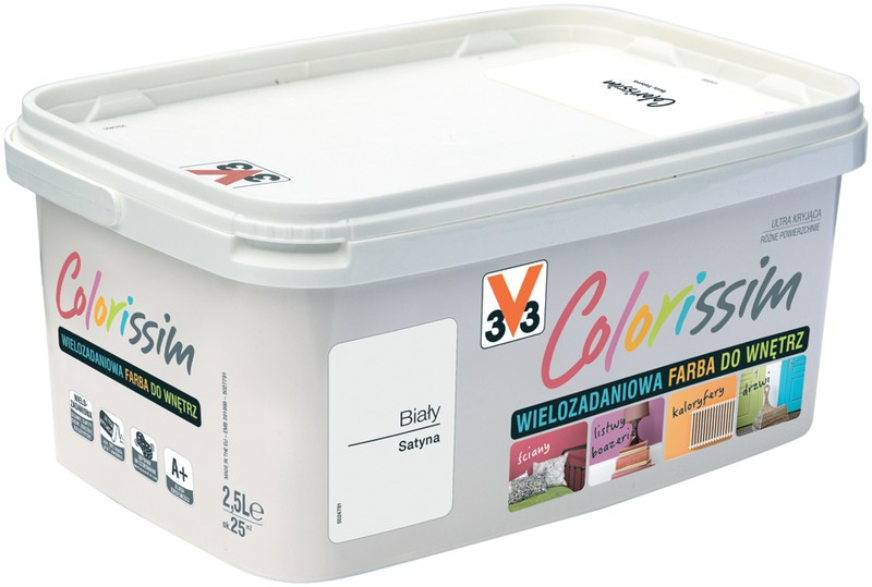 Farba Colorissim jest o tyle wyjątkowa, że oprócz typowego dla tego rodzaju farb przeznaczenia, jakim są ściany, można ją używać także na inne powierzchnie wewnętrzne, takie jak boazerie, drzwi, szafki czy też kaloryfery. Dzięki wielozadaniowości wyrobu nie musimy już dokupywać emalii do pozostałych elementów w pomieszczeniu, znika także problem niedopasowania kolorów czy stopnia połysku.