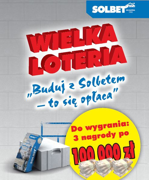 Terminy losowań nagród w Wielkiej Loterii "Buduj z Solbetem – to się opłaca": 05.04.2016, 05.07.2016 oraz 05.10.2016 roku.