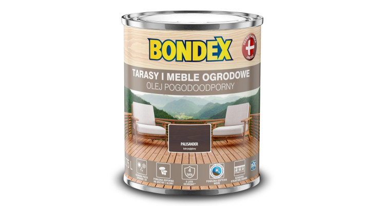 Dokonując renowacji tarasu lub mebli ogrodowych warto zdecydować się na olejowanie. Przy pomocy Oleju Pogodoodpornego marki Bondex uwydatnimy rysunek słojów i podkreślimy naturalny wygląd drewna. Co ważne, oprócz walorów dekoracyjnych zyskamy trwałą ochronę drewna przed szkodliwym działaniem czynników atmosferycznych i promieni UV, nawet do 4 lat.