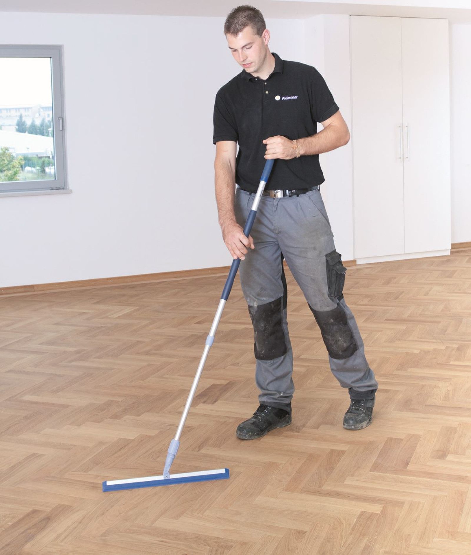 Olej najlepiej rozprowadzać na podłodze specjalnym aplikatorem, wykonując półokrągłe ruchy, fot. Pallmann