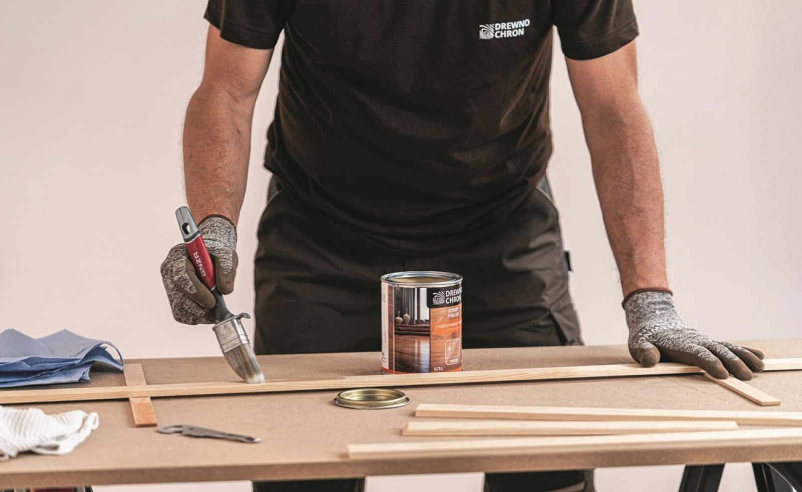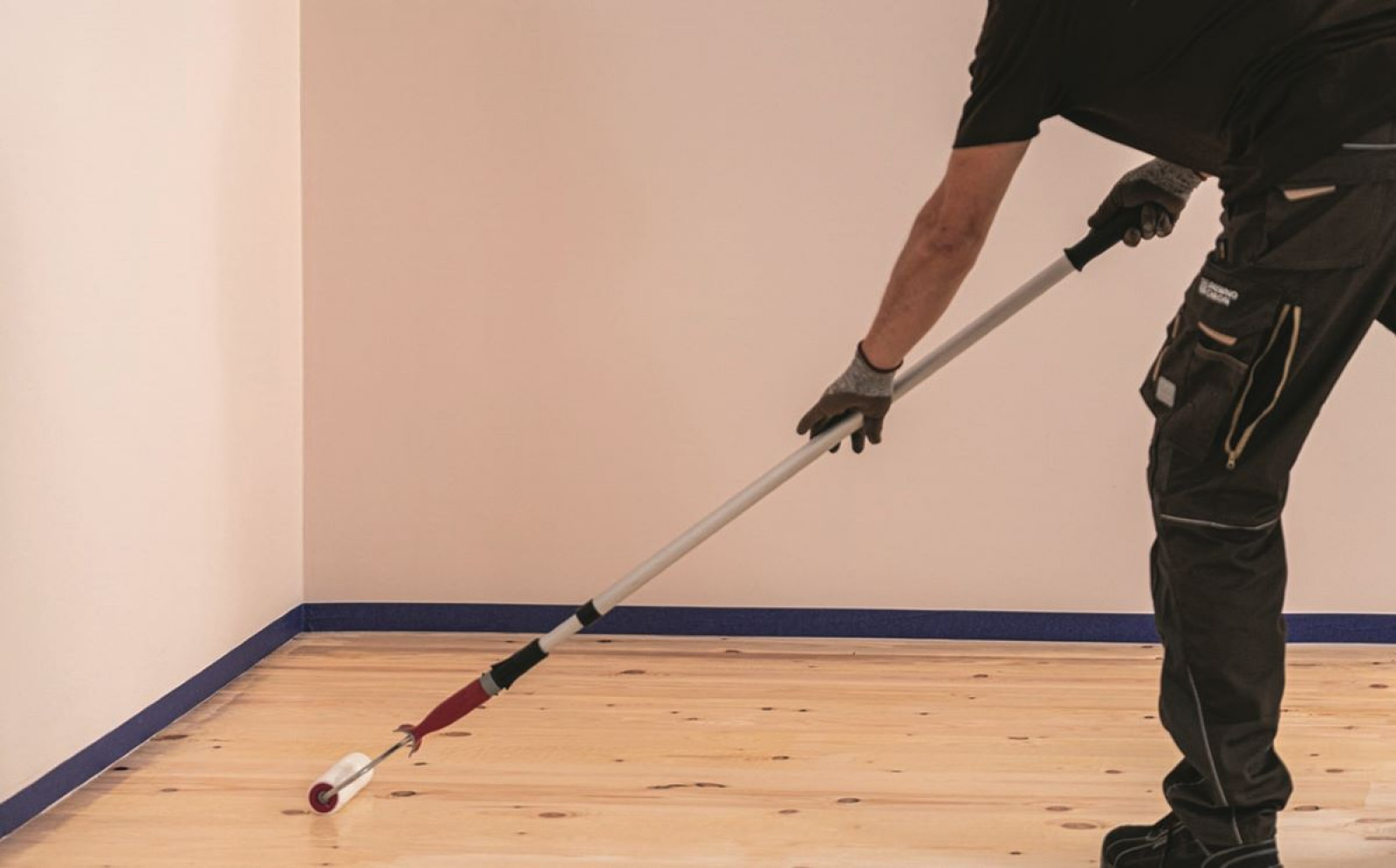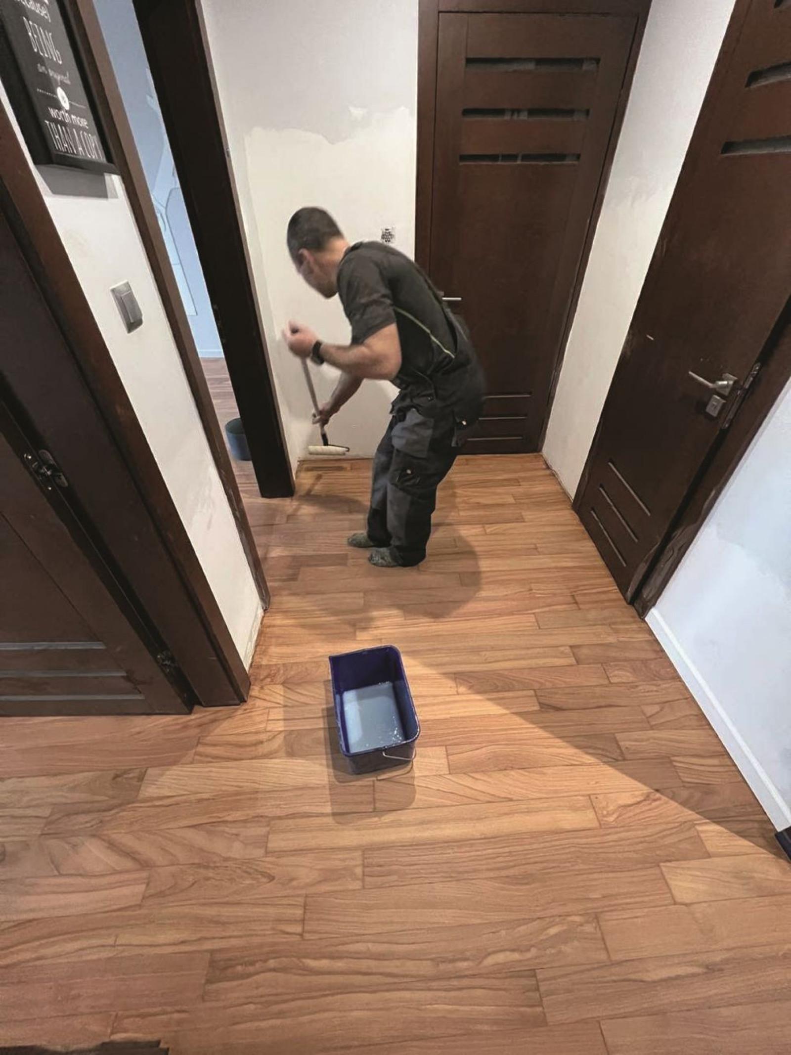 Podczas lakierowania przydatna jest pomoc drugiej osoby, która z innej perspektywy będzie widzieć, czy każde miejsce zostało pokryte preparatem. Nie da się przecież przejść po mokrej posadzce, żeby poprawić niedociągnięcia, fot. brigadepro.pl