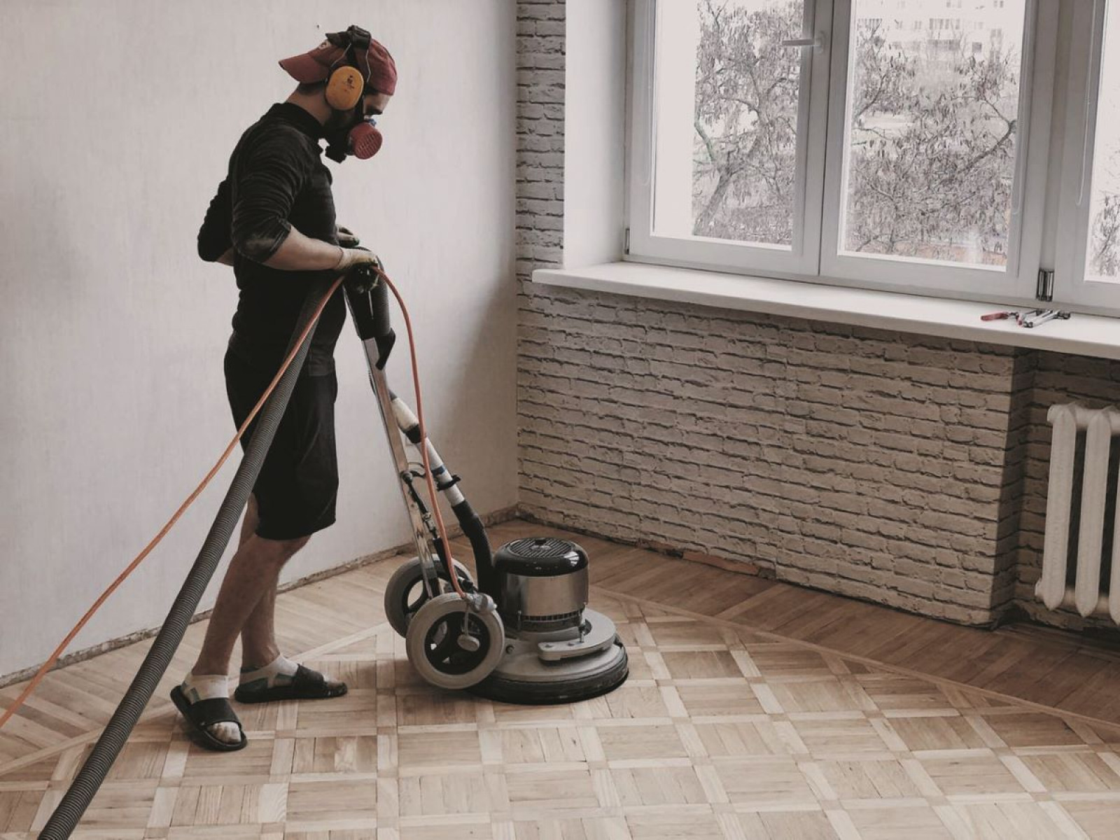 przygotowanie powierzchni (szlifowanie, usunięcie starego wykończenia) - 30-60 zł/m2 (w zależności od stanu podłogi);