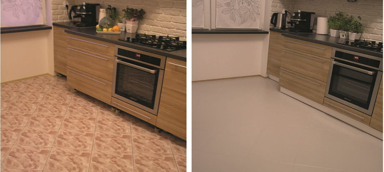 Wygląd starych płytek ceramicznych na podłodze można szybko odmienić malując je specjalną farbą, fot. NOXAN
