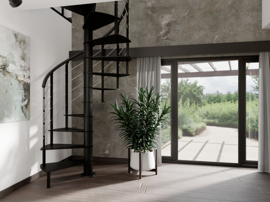 Trio Metal od Schody Rintal Polska to projekt będący pochwałą geometrycznej precyzji. Spiralna forma i chłód metalowych stopni tworzą w przestrzeni dynamiczną rzeźbę, która intryguje pod każdym kątem. To wybór do wnętrz szukających wyrazistych i bezkompromisowych rozwiązań. Trio Metal łączy techniczną perfekcję z nowoczesnym stylem, nadając architekturze domu unikalny, wyrafinowany charakter.