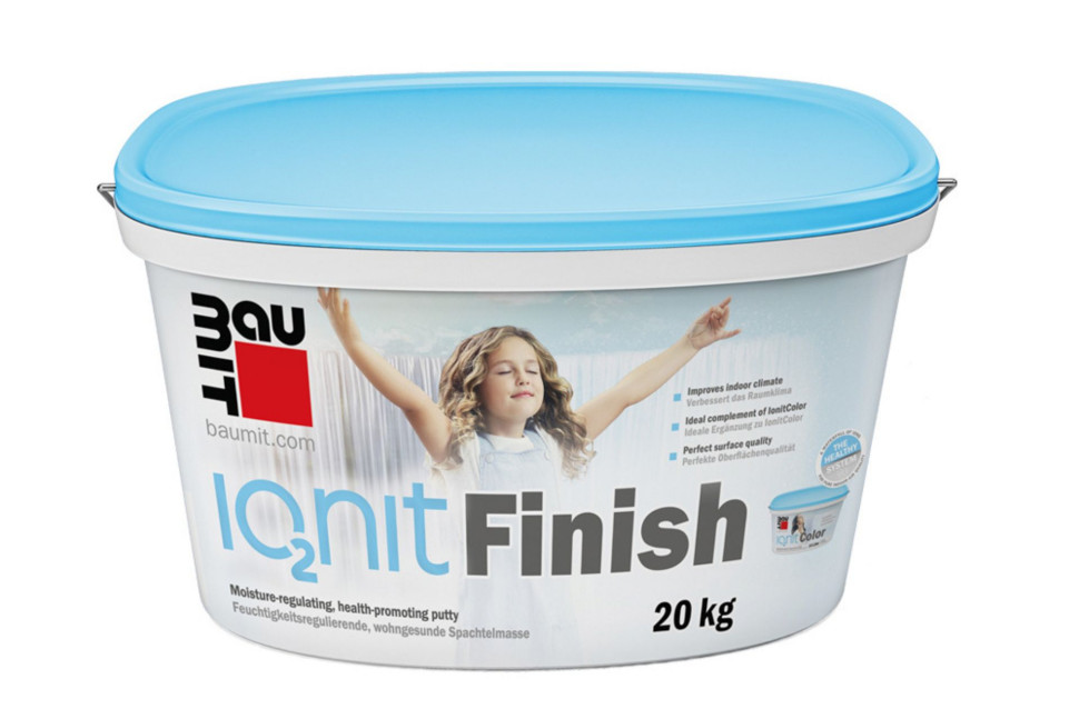 Baumit IonitFinish także wspomaga regulację wilgotności, a dzięki znakomitej paroprzepuszczalności pozwala ścianom „oddychać”. Wchłania nadmiar wilgoci i oddaje ją, gdy powietrze staje się zbyt suche. W połączeniu z farbą Baumit IonitColor, generującą jony ujemne, tworzy system oczyszczający powietrze z drobinek kurzu, pyłków i aerozoli, które mogą przenosić bakterie i wirusy.